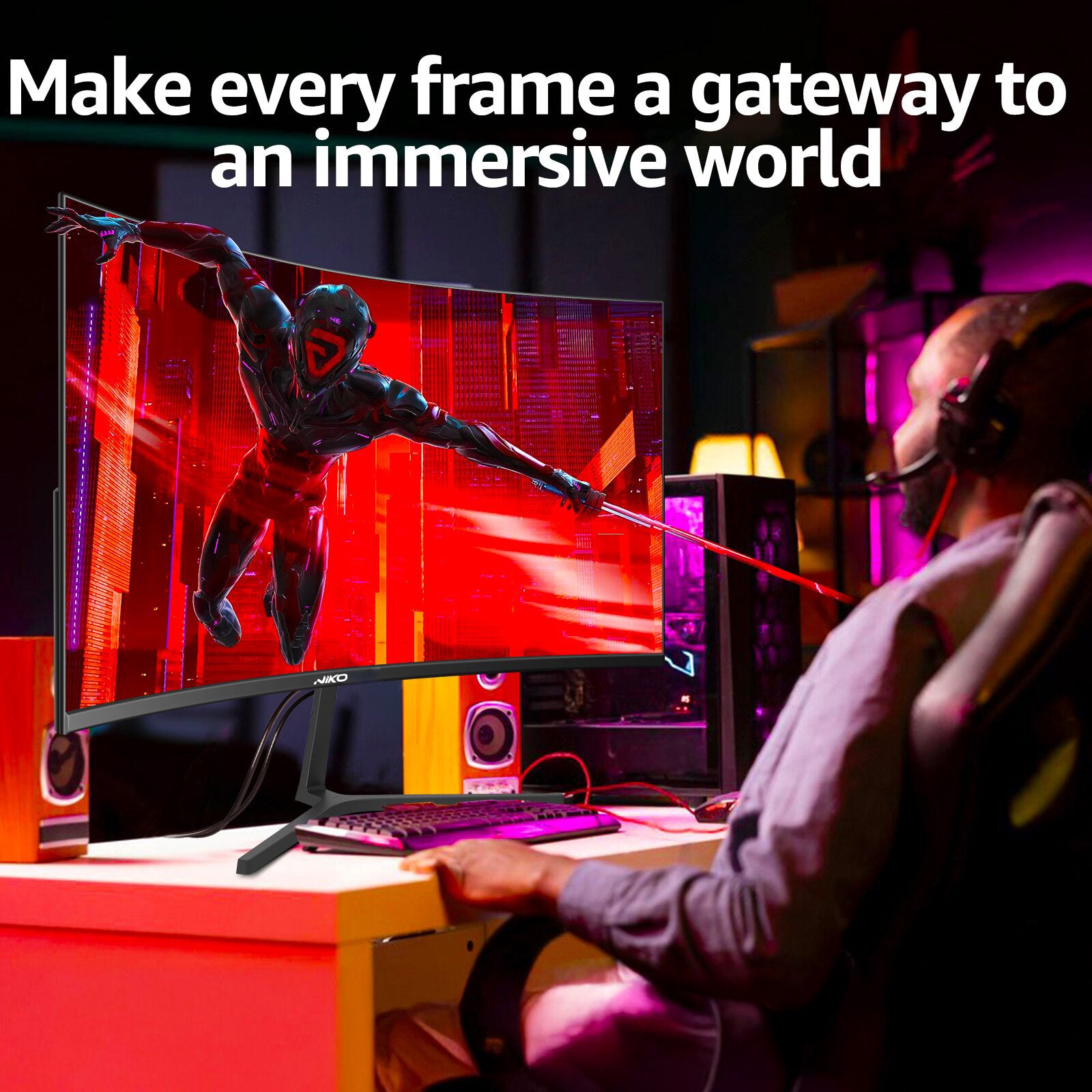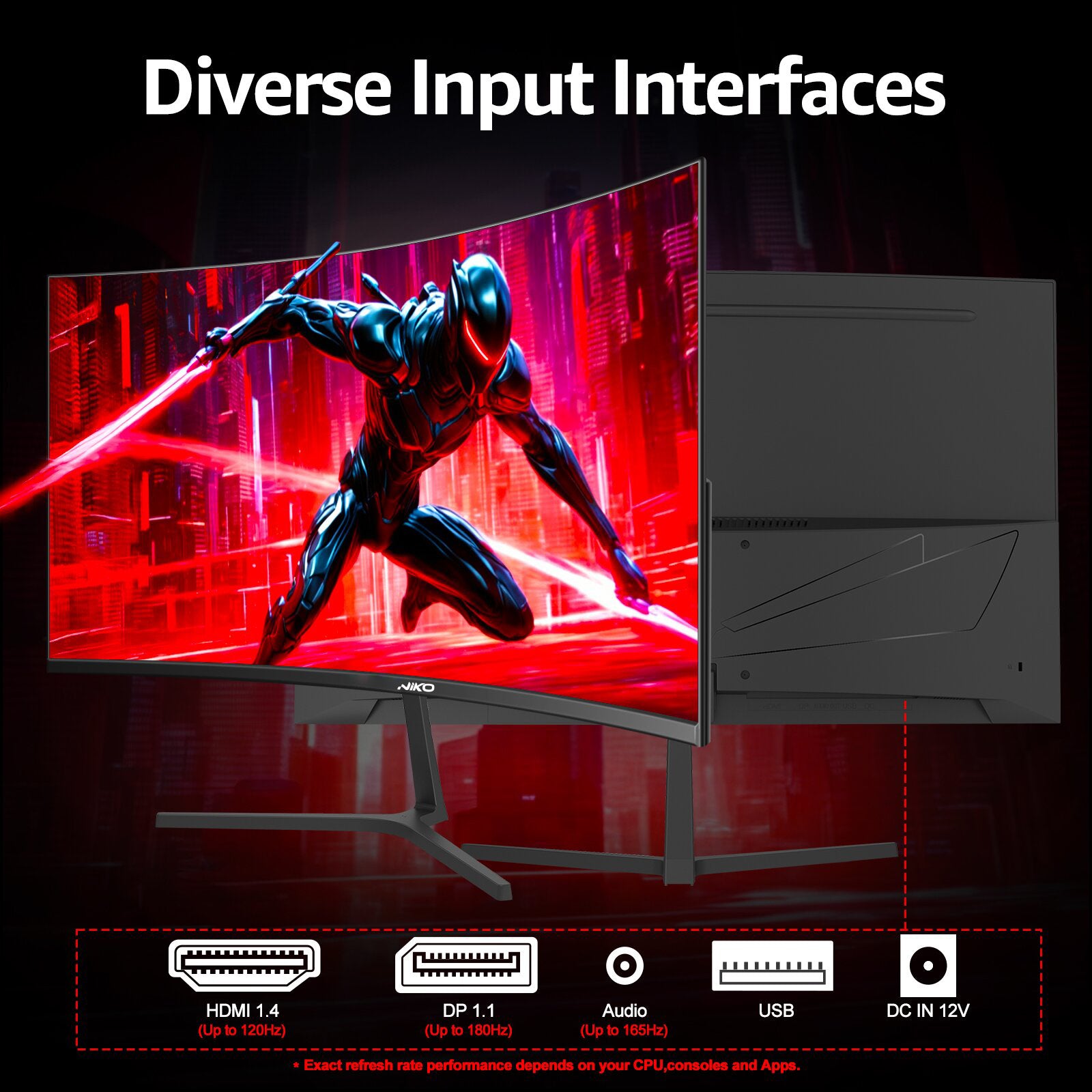 Niko 27 Inch 2K QHD Curved Gaming Monitor, 165Hz Refresh Rate, 2560x1440 Resolution, 1ms Response Time, DisplayPort & HDMI, Eye Care Technology