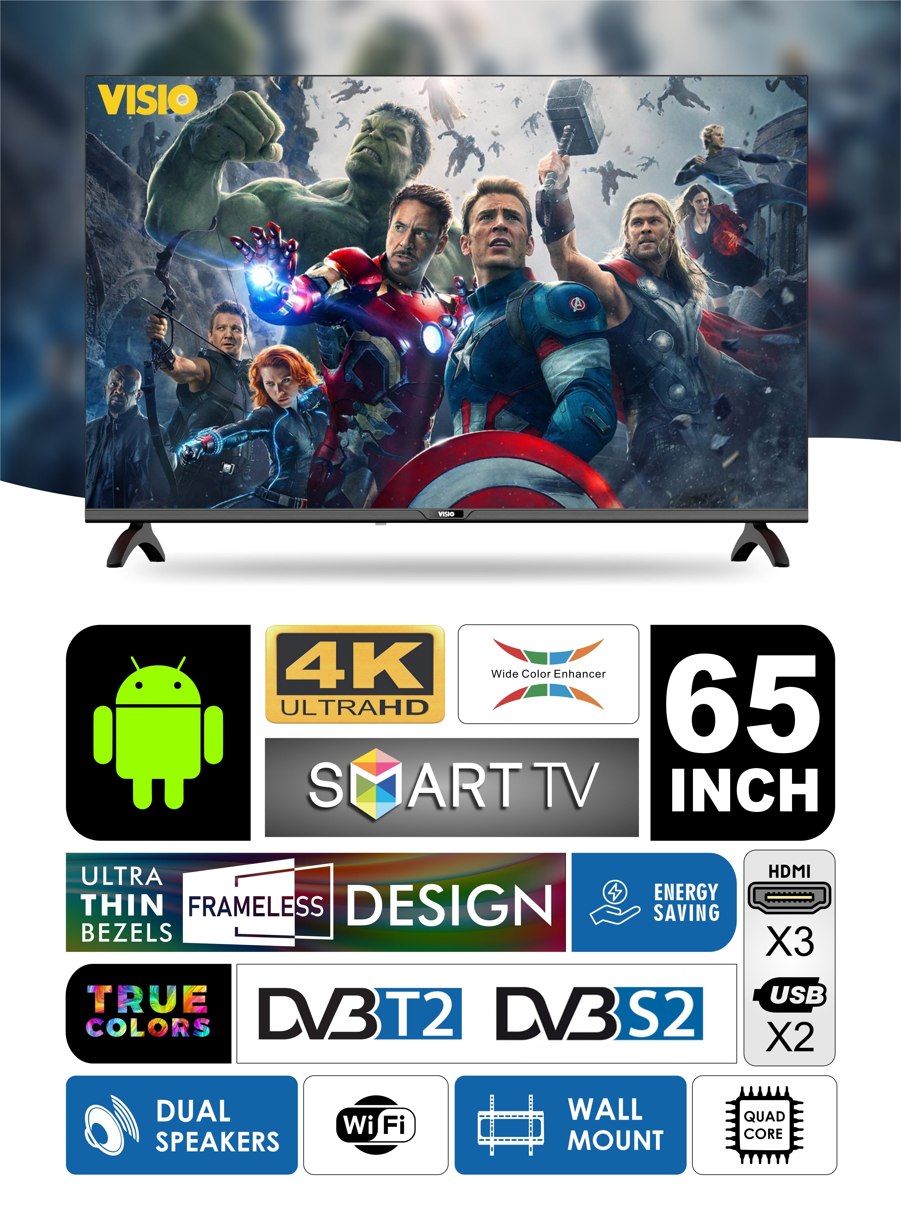 تلفزيون ٦٥ بوصة اندرويد | فيسيو إل إي دي فائق الدقة ٤K ذكي